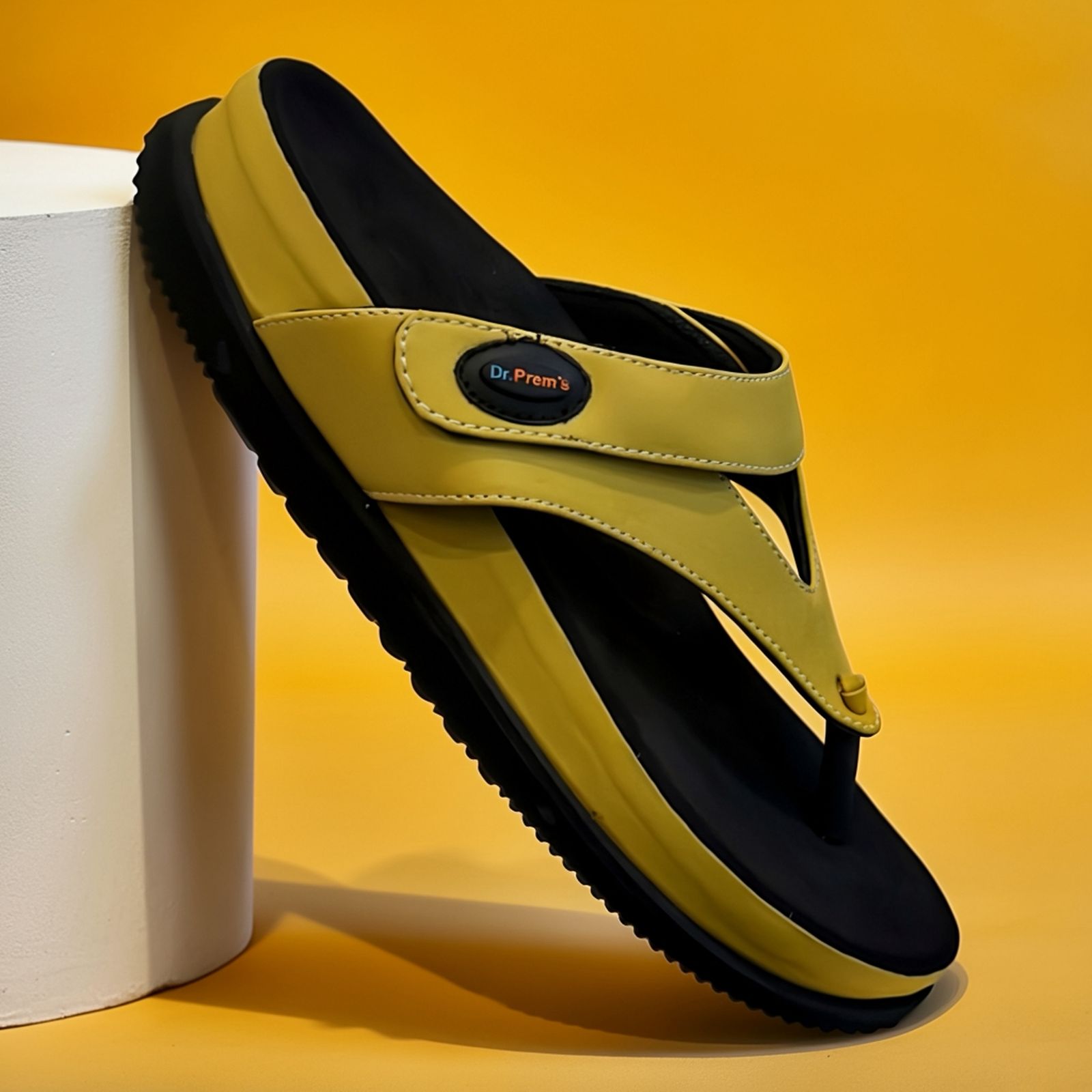 Dr.Prem’s Orthopedic Comfort V-Strap Slipper In Black & Yellow