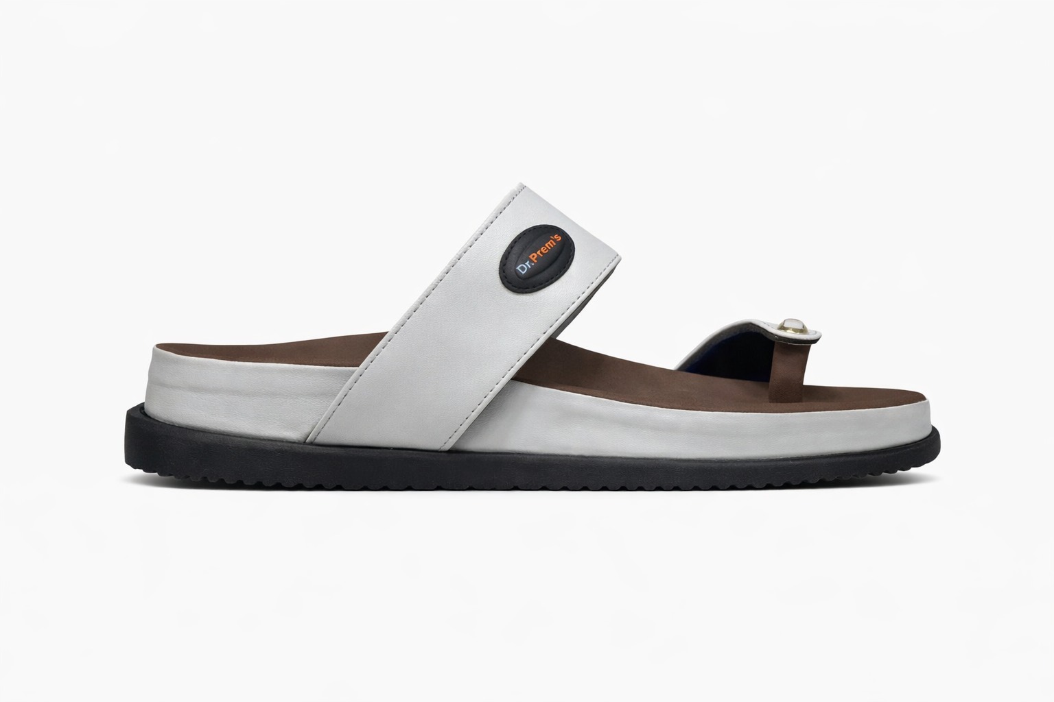 Dr.Prem’s Comfort Unisex Dual-Strap Toe-Ring Sandals in Grey & Brown